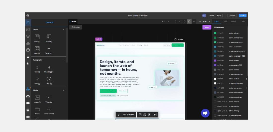 Using platforms like TeleportHQ, you describe your business, product, or goal, and the AI handles the heavy lifting by: